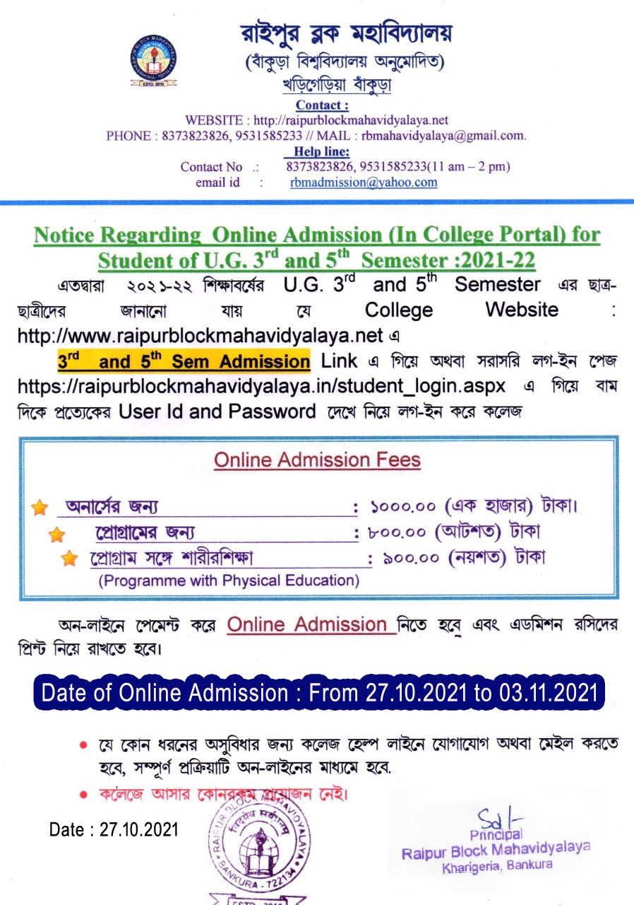 3rd & 5th Semester admission